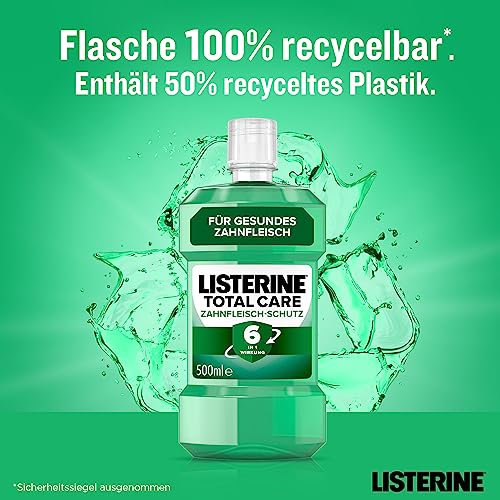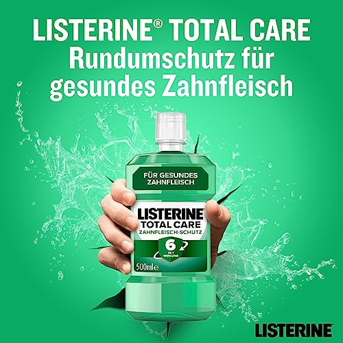 LISTERINE Umfassend Care Zahnfleisch-Abschirmung Mundspülung ist die ideale Ergänzung zur täglichen Zahnpflege und bietet einen 6 in 1 Rundumschutz für gesundes Zahnfleisch. Zusätzlich zum Zähneputzen angewendet, bekämpft die antibakterielle Mundspülung schädliche Bakterien auch dort, wo die Zahnbürste oftmals nicht hinkommt: zwischen den Zähnen, am Zahnfleisch und auf der Zunge. Indem die Mundspülung Zahnbeläge verhindert und reduziert, wird auch das Risiko für Zahnfleischentzündungen gemindert. Dank der ätherischen Öle wird nicht nichtsdestoweniger der Mundraum, sondern auch der Atem angenehm erfrischt.