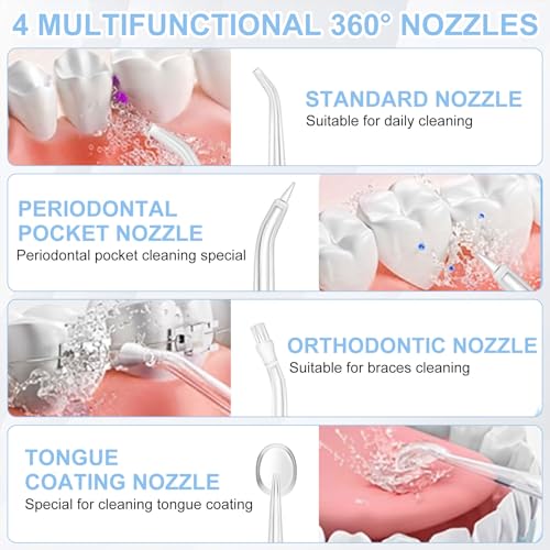 ✅【Komplette Zahnhygiene】 Genießen sie in nur 1 Minute pro tag hellere, sauberere zähne und gesünderes zahnfleisch. Diese munddusche kann 99,99 % der tiefen speisereste effektiv entfernen, das zahnfleisch massieren und die durchblutung fördern. Die Wasserzahnseide kann auch dazu beitragen, Mundgeruch und anderen oralen Problemen vorzubeugen, wodurch Ihr Mund frischer und sauberer bleibt.