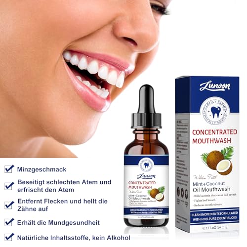 【Gesunde Inhaltsstoffe】Unsere mouthwash besteht allesamt 100 % natürlichem Pfefferminz- und Kokosöl, ist Nicht alkoholisch, herzensgut und nicht reizend für das Zahnfleisch und die Mundschleimhaut, um den Atem zu erfrischen und den Mund sauber zu halten