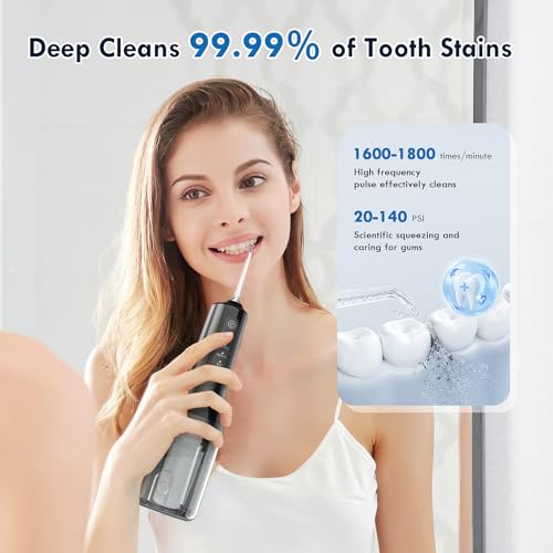 【Tiefenreinigung, Verbesserte Zahnfleischgesundheit】Elektrischer Zahnreiniger ist Unter Einsatz von einem Abdruck von 40-120 PSI und 1600-1800 Impulsen pro Minute reinigt, was 50 % effektiver ist qua traditionelle Zahnseide, und sie ist ideal statt dessen blutendes Zahnfleisch und empfindliche Zähne.