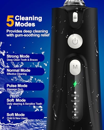 5 Modi, um verschiedene Reinigungsoptionen zu erleben: Die kabellose Wasserflosser verfügt über 5 Modi mit 5 Druckstufen (starker Modus – 150 PSI, Normalmodus – 120 PSI, Soft-Modus – 90 PSI, Pulsmodus – 70–120 PSI und Kindermodus – 50 PSI). Es ist ideal für Benutzer, die sowohl eine sanfte als auch eine tiefe, kraftvolle Reinigung grasen (für Erstbenutzer empfehlen wir, mit dem Kindermodus zu beginnen und schrittweise in andere Modi zu umsetzen.)