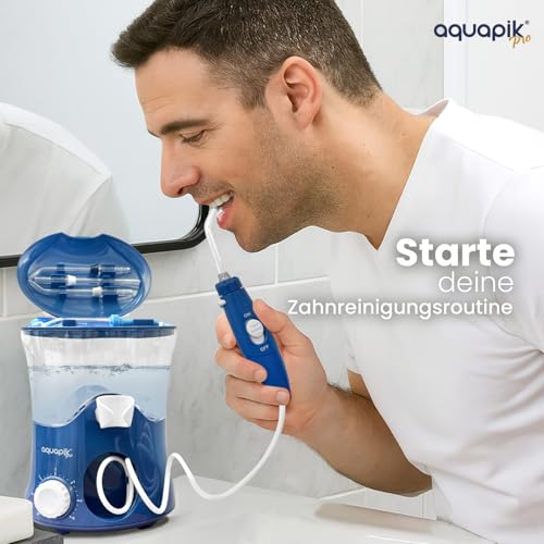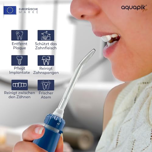 🦷 Professionelle Plaque-Abtransport denn ein Water Flosser Die Aquapik PRO Munddusche (Oral Irrigator) entfernt bis zu 99,9 % der Plaque, wo Zahnbürste und Zahnseide nicht hinkommen, zugunsten spürbar saubere Zähne und gesunde Zahnfleischränder.