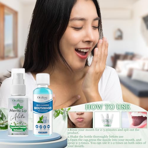 【Mundfrische, langanhaltende Frische】Das Mundspray und die Mundspülung mit Minze bieten eine ganzjährige Auftrennung für eine frische Mundhygiene. Das Mundspray sorgt sofort für frischen Atem und ein erfrischendes Gefühl zu jeder Zeit, überall. Die Mundspülung daher reinigt tiefgehend die Mundhöhle und beseitigt unangenehme Gerüche, sodass der frische Effekt lange anhält. Beide Produkte zusammen bieten eine umfassende Pflege für Ihren Mund und helfen dabei, den Mundgeruch zu bekämpfen.