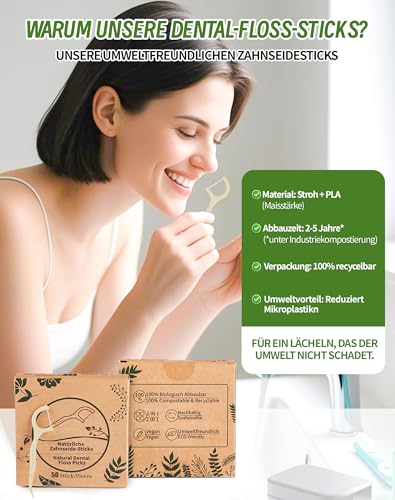 ♻️UMWELTFREUNDLICH & BIOLOGISCH ABBAUBAR: Für aus, die nachhaltig leben möchten: Unsere Zahnseide-Sticks bestehen jedweder PLA auf Maisstärkebasis 🌽 und natürlichem Stroh 🌾 – 100 % plastikfrei abgepackt. Sie sind biologisch abbaubar und helfen, Plastikmüll zu verhüten – jedweder ohne Kompromisse bei der Qualität.