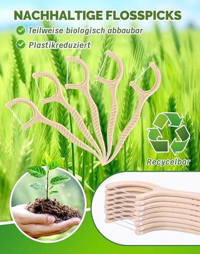 ♻️UMWELTFREUNDLICH & BIOLOGISCH ABBAUBAR: Für alle, die nachhaltig leben möchten: Unsere Zahnseide-Sticks bestehen aus PLA auf Maisstärkebasis 🌽 und natürlichem Stroh 🌾 – 100 % plastikfrei verpackt. Sie sind biologisch abbaubar und helfen, Plastikmüll zu vermeiden – ganz ohne Kompromisse bei der Qualität.