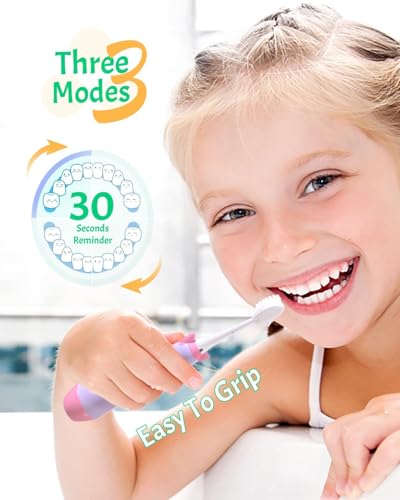 Bietet drei Bürstmodi, die auf unterschiedliche Bedürfnisse zugeschnitten sind, zusammen mit einem 2-Minuten-Timer mit 30-Sekunden-Intervallen, um gründliches Bürsten zu beseitigen, hilft Kindern, gute Mundhygiene-Gewohnheiten zu entwickeln