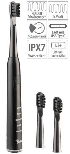 Schallzahnbürste SZB-290 inklusive Bürstenkopf, 2 Ersatz-Bürstenköpfe, USB-Ladekabel (USB-A auf USB-C) und deutscher Anleitung. Elektr Zahnbürsten – Außerdem relevant oder brauchbar zu: Wasserdichte Taschen, Tasche, Akkuladegerät, Vibration, Bürste, Abstauben, Reise, Zahn