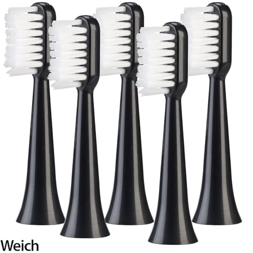 Praktisches 5er-Set Aufsteckbürsten • Einfach Bürstenkopf ergänzen anstelle dauerhaft optimale Mund-Hygiene • DuPont-Borsten anstelle sanfte Reinigung • Massiv hygienisch: abgesondert verpackte Aufsteckbürsten
