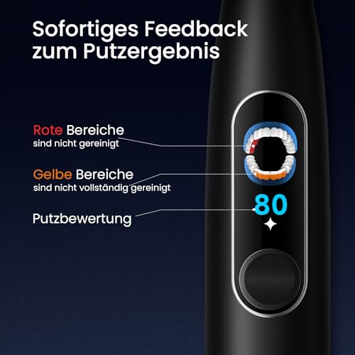 Oclean elektrische Zahnbürste X Elite 10, Touchscreen mit 12 Bereichsverfolgung, 5 Putzmodi Schallzahnbürste mit Timer, 40 Tage Akkulaufzeit Sonic Electric Toothbrush, 45dB, Schwarz