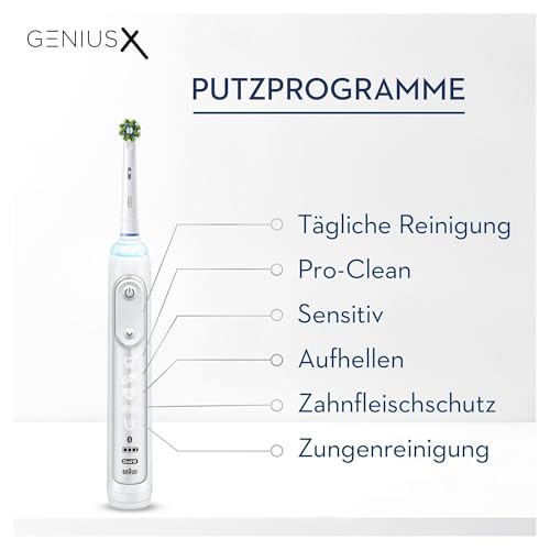 Oral-B Genius X Elektrische Zahnbürste/Electric Toothbrush, 6 Putzmodi für Zahnpflege, künstliche Intelligenz & Bluetooth-App, Geschenk Mann/Frau, Designed by Braun, weiß