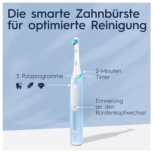 Oral-B iO Series 3 Plus Edition Elektrische Zahnbürste, Electric Toothbrush, PLUS 3 Aufsteckbürsten, 3 Putzmodi für Zahnpflege, Designed by Braun, TESTSIEGER Stiftung Warentest (12/2024), Hellblau