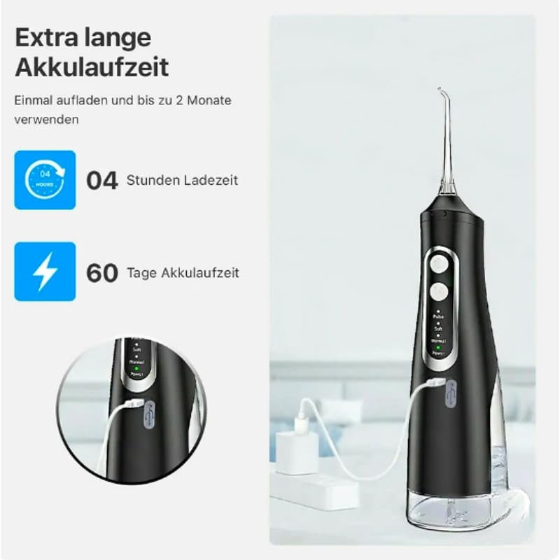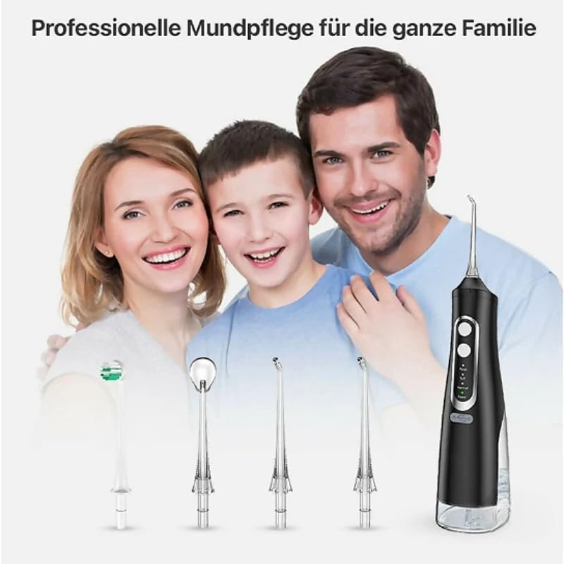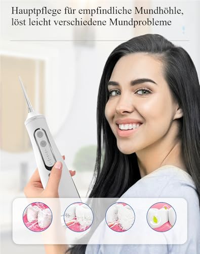 Kabellose Munddusche statt dessen optimale Zahn- & Mundpflege / 4 Modi & 4 Düsen / 310 ml Wassertank / IPX7 Wasserdicht / Munddusche statt dessen Zahnfleisch