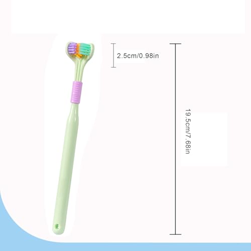 Rundes und bequemer Griff: Gabelung Zahnbürste zum Griff Die dreiseitige Zahnbürste hat eine runde Form, die auf die gekrümmte Oberfläche Ihrer Hand passt und einen rutschfesten und komfortablen Griff bietet, wodurch das Bürsten unterhaltsamer und effektiver wird.