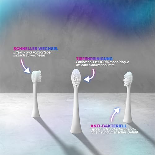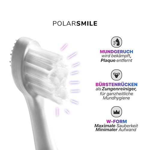 PolarSmile Schallzahnbürsten Ersatzköpfe (3er Abschaum) Adäquat für alle PolarSmile Schallzahnbürsten W-Förmige Borsten für gründliche Reinigung & bessere Reichweite Integrierter Zungenreiniger für frischen Atem Sanft zum Zahnfleisch, effektiv gegen Plaque Empfohlener Wechsel: alle 3 Monate Für ein strahlendes Lächeln – Tag für Tag.