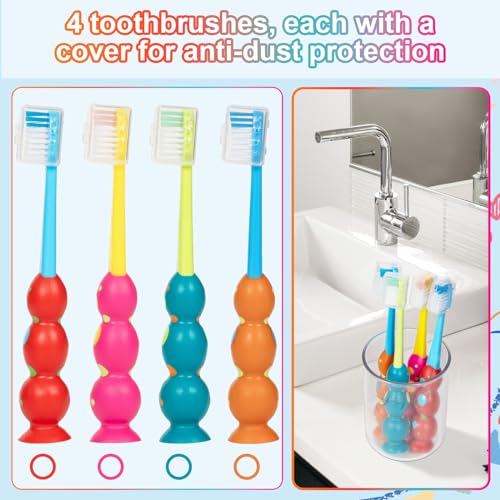 Diese 4er-Packung Kinderzahnbürsten ist die perfekte Abtrennung zur Zerlegung guter Mundhygienegewohnheiten bei kleinen Kindern. Mit Bürstenköpfen, die speziell für kleinere Münder geeignet sind, reinigen die weichen Borsten sanft Zähne und Zahnfleisch, ohne Beschwerden zu verursachen. Die innovative Saugnapfbasis ermöglicht es, jede Zahnbürste belastbar an jeder glatten Oberfläche zu befestigen, sodass sie organisiert und leicht zugänglich bleibt. Dies macht es für Eltern bequem, die Bürsten im Badezimmer aufzubewahren, und ermutigt Kinder, eine konsistente Putzroutine zu entwickeln. Geeignet für Kleinkinder, Mädchen und Jungen im Alter von 3–10 Jahren. Dieses Zahnbürsten-Set ist in einer Vielzahl von lustigen, mehrfarbigen Designs erhältlich, um eine Spalier von Vorlieben und Persönlichkeiten anzusprechen. Die robuste Konstruktion sorgt dafür, dass die Bürsten dem täglichen Gebrauch standhalten, während die kindgerechte Größe und Form die richtige Bürstentechnik auflösen und das Vertrauen bei jungen Benutzern aufbauen. Egal, ob Sie abgenutzte Zahnbürsten tauschen oder Ihr Nachkomme auf den Wie weggeblasen zur lebenslangen Zahngesundheit starten möchten, dieses 4er-Pack Kinderzahnbürsten ist eine ausgezeichnete Wahl.