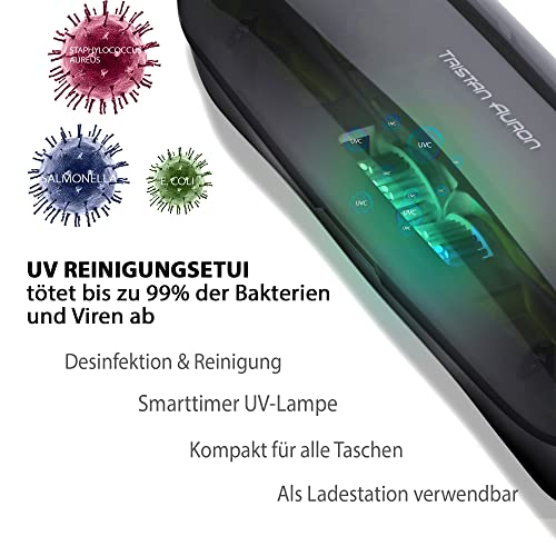 5. UV-Reiseetui mit Sterilisator-Bildnis Das kompakte Etui mit integrierter UV-Desinfektion tötet bis zu 99,7 % der Bakterien ab – schützt Zahnbürste und Aufsteckbürsten hygienisch und stilvoll auf Reisen oder im Badezimmer.