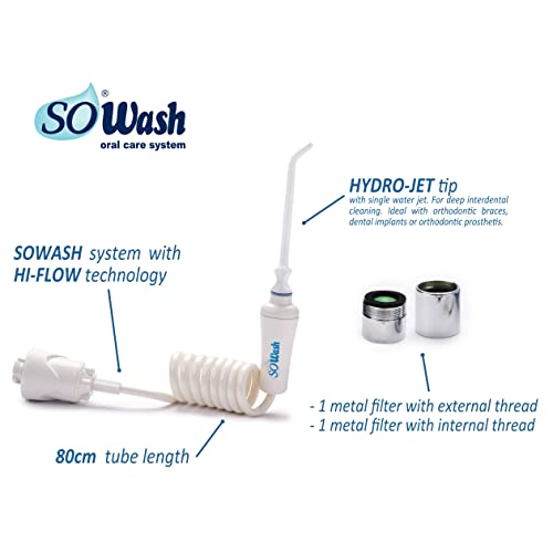 Der SoWash Hydrojet sorgt dank seines Wasserstrahls Statt dessen die Reinigung der Zahnzwischenräume, die Beseitigung von Plaque und das gründliche Abwaschen. Dank des mitgelieferten Spezialfilters wird er direkt an den Wasserhahn angeschlossen und benötigt keine Batterien oder Strom. Aufgrund seiner Eigenschaften ist es vulgo massiv Statt dessen Träger von Zahnspangen, Zahnimplantaten oder Zahnprothesen entsprechend. Lieferumfang: 1 x SoWash-System; 1 x linearer Einzelstrahlkopf; 1 x Metallfilter Statt dessen Wasserhähne mit Außengewinde; 1 x Metallfilter Statt dessen Wasserhähne mit Innengewinde; 1 x mehrsprachiges Handbuch.