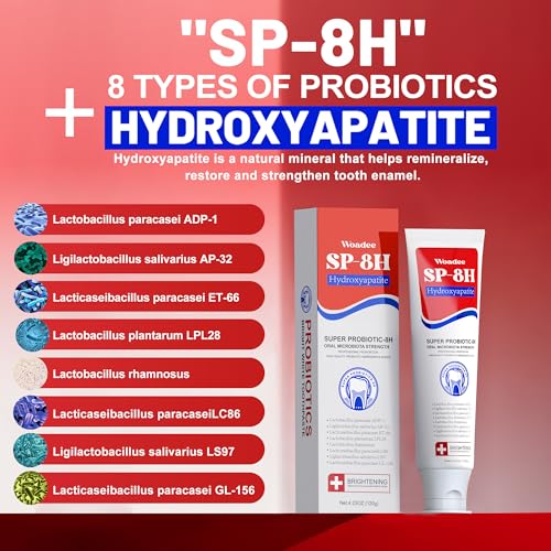 Innovative “SP-8H“-Formel – 8Arten von Super-Probiotika plus Hydroxylapatit-Formel von Woadee zum Schutz Ihrer Zähne vor täglicher Abnutzung, zur Verringerung des Risikos von Karies und Erosion und zur Förderung einer langfristigen Mundgesundheit.