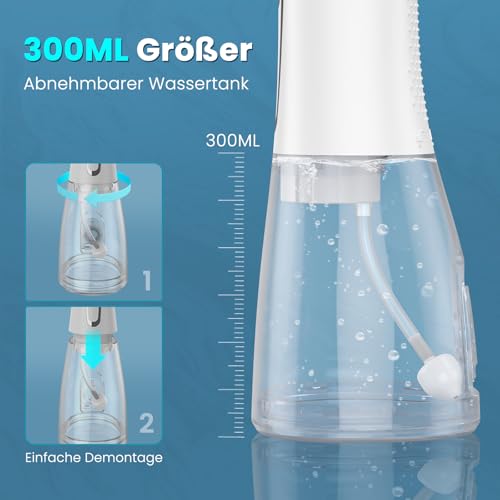 【Großer Wassertank】Mit einem großzügigen 300-ml-Wassertank, der abnehmbar und leicht zu reinigen ist, genießen Sie längere Reinigungsintervalle ohne häufiges Nachfüllen. Die praktische Schwerkraftkugel sorgt dafür, dass das Wasser gleichmäßig fließt, während die große Öffnung das Einfüllen und Reinigen erleichtert.