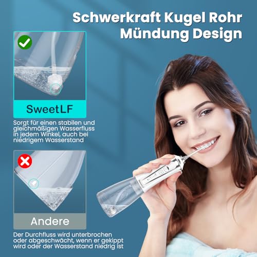 【Effektive Tiefenreinigung】Dank elektrische zahnbürste des kontinuierlichen Wasserstrahls entfernt unsere Munddusche 99,99 % der Speisereste und ist damit 50 % effektiver als herkömmliche Zahnseide. Diese leistungsstarke Reinigung hilft, Zahnfleischbluten zu mildern und empfindliche Zähne zu schützen, während sie gleichzeitig Karies und Plaque effektiv vorbeugt.