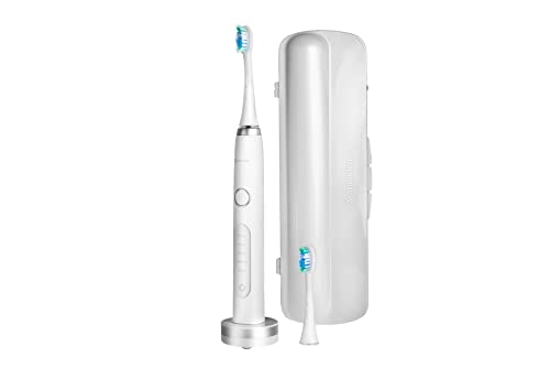 Starten Sie perfekt in den Tag mit der elektrischen Schallzahnbürste von @tec – wasserdicht IPX7 + 2 Bürstenköpfe