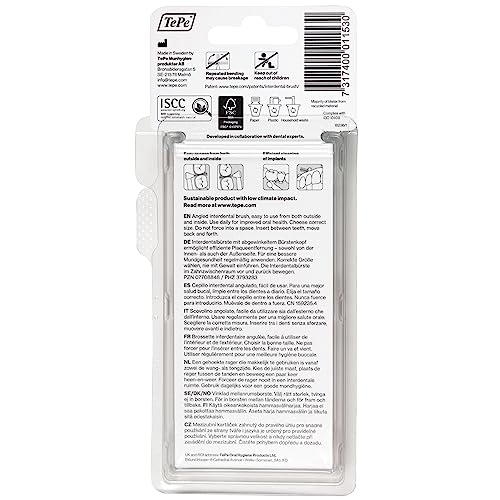 Die Reinigung mit einer Interdentalbürste ist eine außerordentlich effiziente Methode, um Plaque zwischen den Zähnen zu ablösen. Sie wurde entwickelt, um die Zahnzwischenräume zu reinigen, die mit einer normalen Zahnbürste nicht erreicht werden können. Mit einer Zahnbürste alleinig reinigst du ca. 60 % deiner Zähne, gleichwohl durch die Zusatz einer Interdentalbürste bei deiner Zahnpflegeroutine kannst du bis zu 100 % deiner Zähne reinigen. Die TePe Angle Interdentalbürste hat einen langen Griff und einen abgewinkelten Bürstenkopf für eine leichtere Zugänglichkeit. Die TePe Angle ist in 6 verschiedenen Größen erhältlich. Die rote Bürste entspricht der ISO-Größe 2 und reinigt kleine Zahnlücken. Sie eignet sich optimal zur Reinigung von Zahnzwischenräumen, Implantaten, Brücken und Kronen. Verwende sie täglich, um Zähne und Zahnfleisch gesund zu halten.