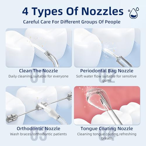 Erleben Sie alle Ihre Mundpflegebedürfnisse mit 5 Pro-Grade-Düsen: Im Lieferumfang enthalten: 3 x Classic (tägliche Reinigung), 1 x Kieferorthopädisch (Hosenträger), 1 x Zungenschaber (frischer Atem). Der um 360° drehbare Düsenkopf erreicht die Backenzähne mühelos zurück. Ideal für Implantate, Kronen oder enge Räume: keine Interdentalbürsten, Mundwasser oder Zungenreiniger mehr. Ein Triebwerk regiert sie alle!