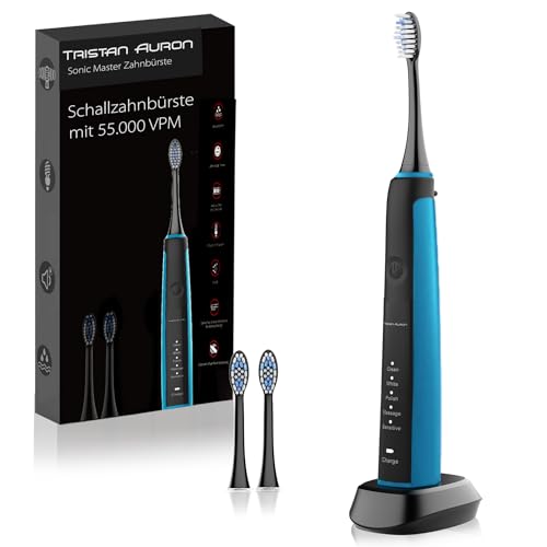 Tristan Auron Schallzahnbürste – elektrische Reisezahnbürste 2025-100 Tage risikofrei testen – mit 2 Aufsätzen – 5 Programme, 55.000 Schwingungen – leise, wasserfest (Blau)