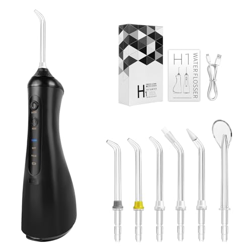 Wasserflosser für Zähne Schnurlose Munddusche Dental Water Jet, Elektrische Zahnseide mit 6 Jet Tips 320ML Wassertank USB Wiederaufladbar für Zähne/Zahnspangen/Bridges Clean