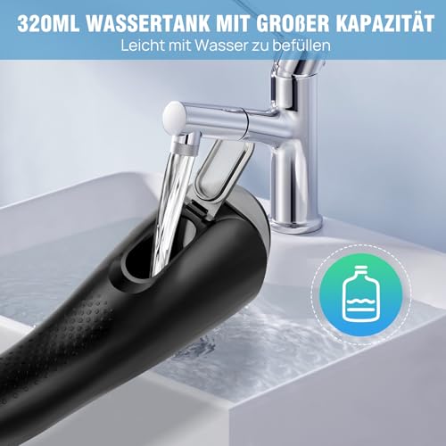 🌱【320ml Wassertank mit großer Kapazität】: Der Wassertank dieser Zahnseide hat eine Kapazität von 320ml, die größer ist als die meisten Produkte auf dem Marktgebiet. Der Hauptrahmen und der Wassertank sind aus Antiblockiersystem-Material gefertigt, das leicht und einfach zu reinigen ist, während das abnehmbare breite Munddesign einfach zu reinigen ist.