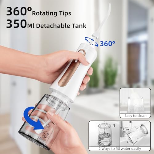 【350 ml Wassertank & IPX7 wasserdicht】 350 ml abnehmbarer Wassertank mit dem Schwerkraftball bietet genug und ununterbrochene Mundzahnseide. 2 Füllmöglichkeiten mit einer großen Öffnung für einfaches Ausgießen und regelmäßige Reinigung, um Wasserrückstände zu vermeiden. Die Zahnseide ist aus lebensmittelechtem Material, gefestigt und gefestigt, IPX7 wasserdichtes Design, waschbar und kann sogar in der Dusche verwendet werden, so dass Sie sich keine Sorgen machen müssen, dass Wasser verschüttet wird und im Badezimmer ein Chaos verursacht.