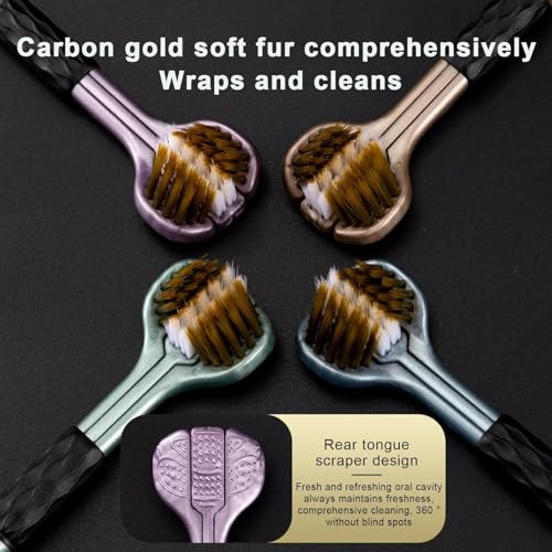 Komfortable Reinigung: Weich und bequem, unsere 3-seitige Zahnbürste mit Carbon-Gold-Technologie dringt sanft in jeden Zahnzwischenraum ein und entfernt Essensreste, schützt effektiv Ihr Zahnfleisch und erhält gleichzeitig eine optimale Mundhygiene.