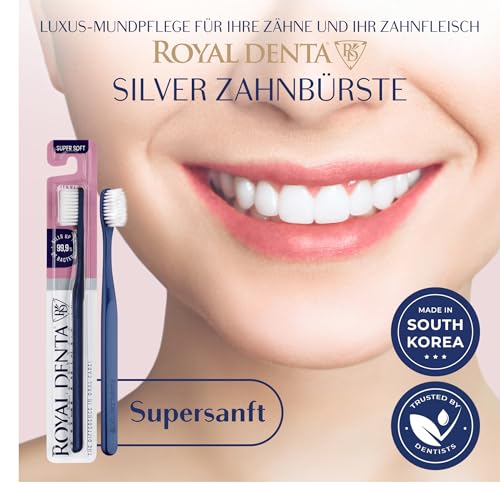 Zahnbürste Extra Weich mit Silberpartikeln | Super Weiche Zahnbürste für Empfindliche Zähne & Zahnfleisch | Antibakterielle Doppelborsten | Royal Denta | Marineblau