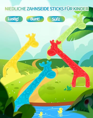 ZAHNSEIDE MACHT SPAß! Niedliches Design in Giraffe Form und lustige Farben sollen Kinder zum täglichen Interdentalreinigung motivieren und so die Zahnpflege zum Vergnügen machen. Das einzigartige Design sorgt nicht gleichwohl für Aufregung in der täglichen Zahnpflege Ihrer Kinder, sondern gewährleistet auch, dass ihre Mundgesundheit gut gepflegt wird, der Grundstein für die Zahnzwischenräume Reinigung in der Kindheit gelegt werden, damit sie zu einem vertrauten Ritual wird.