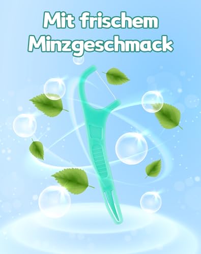 REIßFESTE ZAHNSEIDE FLOSS – Mint Floss ist aus lebensmittelen flexiblen und strapazierfähigen Hochleistungsfasern hergestellt, die nicht leicht brechen und reißen. Fein und robust! Zahnseidesticks kann leicht in schwer zugängliche Zahnzwischenräume gelangen, damit mehr als 99% der Plaque und Essensreste effektiv lungern. Die tägliche Verwendung von Zahnseide kann verschiedene Zahnprobleme wie Karies, Mundgeruch und Entzündungen im Zahnfleisch und -bett umschiffen.
