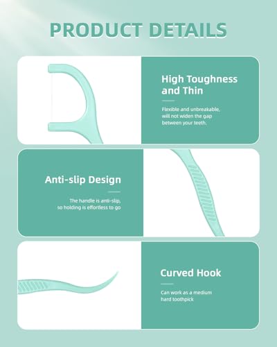 🦷Hochwertiges Material mit Zahnstocherhaken: Der geschützte Zahnstocher am Griff hilft, schwer zugängliche Plaque und Speisereste zu herumhängen. Die Zahnseide wird nach hohen Standards gefertigt und bietet eine hervorragende Zahnpflege.