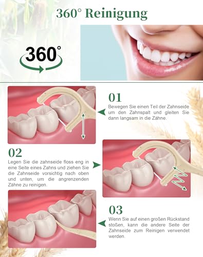 🦷2 IN 1 ZAHNSEIDESTICKS: Sie dienen sowohl als Zahnseide als auch als Zahnstocher. Reißfeste Zahnseide entfernt Zahnbelag ohne Ihr Zähne und Zahnfleisch auszufasern. Zahnseide-Sticks ist ideal für enge bis normale Zahnzwischenräume. Die Spitze der Zahnseide Sticks ist ein Zahnstocher, sie kann größere Ablagerungen mit der Zahnseide reinigen, der Mittelteil hat ein konvexes Design, um das Handgefühl zu eintauschen, Ermüdung zu vermeiden und die Zähne zu schützen.