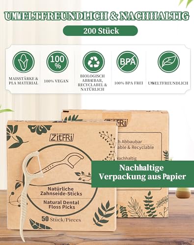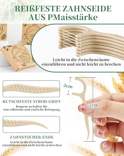 ♻️Nachhaltig & Natürlich – Unsere Veganen Zahnseide-Stick besteht aus Stroh 🌾 und PLA(Maisstärke🌽), und umweltfreundlicher Verpackung besteht aus plastikfreiem Papier, die die Anforderungen des Umweltschutzes erfüllt. Im Lieferumfang sind 4 box Zahnseiden je 50pcs enthalten, insgesamt 200 PCS Natur Zahnseide Stick, Dental Floss Stick ermöglicht Ihnen eine ruhige, umweltfreundliche und lang anhaltende Zahnpflege mit Verwendung von natürlichen Floss.