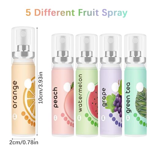 Produkt Details: Unser set enthält 5 mundsprays mittels 5 geschmacksrichtungen zur auswahl: orange, wassermelone, traube, grüner tee und pfirsich. jedes spray enthält 22ml netto