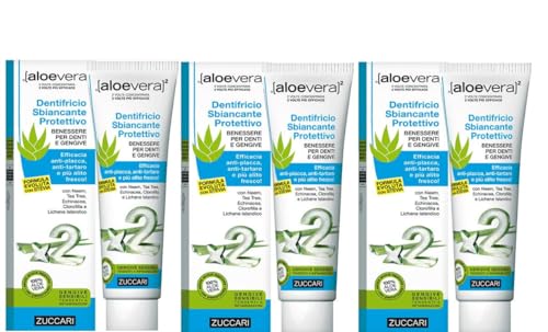 ZUCCARI aloevera² – Aloe Vera Zahnpasta mit Whitening-Effekt (3x100ml) – Vegane & Fluoridfreie Zahnpasta für empfindliches Zahnfleisch – aus 100% Aloe Vera Saft mit Neemöl, Islandmoos & Teebaumöl