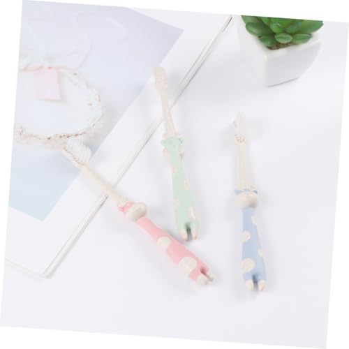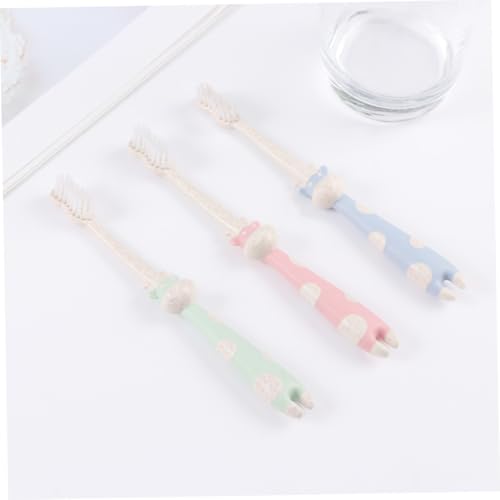 ZUNOXAZ 3 Stück Kinderzahnbürste Weizenstroh mit Weichen Borsten Kleine Cartoon zahnbürsten für Junge Mädchen Rutschfester Griff Bpa frei Kindgerecht in Rosa Blau und Grün für Erste