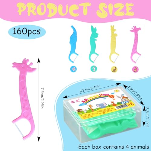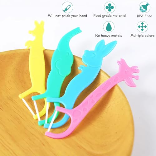 Zahnseide Kinder Flossers Kid Zahnseide Sticks für engen Zahnzwischenräume Dental floss Kids Dental Sticks mit kindergerechtem Griff, 4 Tierformen, bunte Farben