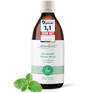 6,99 €Produkt kaufenBitterKraft! Mundziehöl | 200ml | Mundziehöl nach Hildegard von Bingen | Natürliche Mundpflege nach traditioneller Rezeptur | Mundöl Ölziehen | Vegan (200ml, Kloster-Minze)