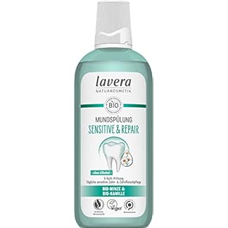 5,95 €Produkt kaufenlavera Mundspülung Sensitive & Repair – Alkoholfrei – mit Fluorid – Bio-Minze und Bio-Kamille – Zahnschmelzschutz – Vegan – Naturkosmetik – 400 ml